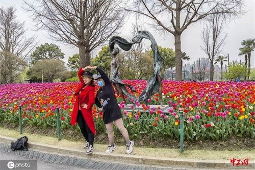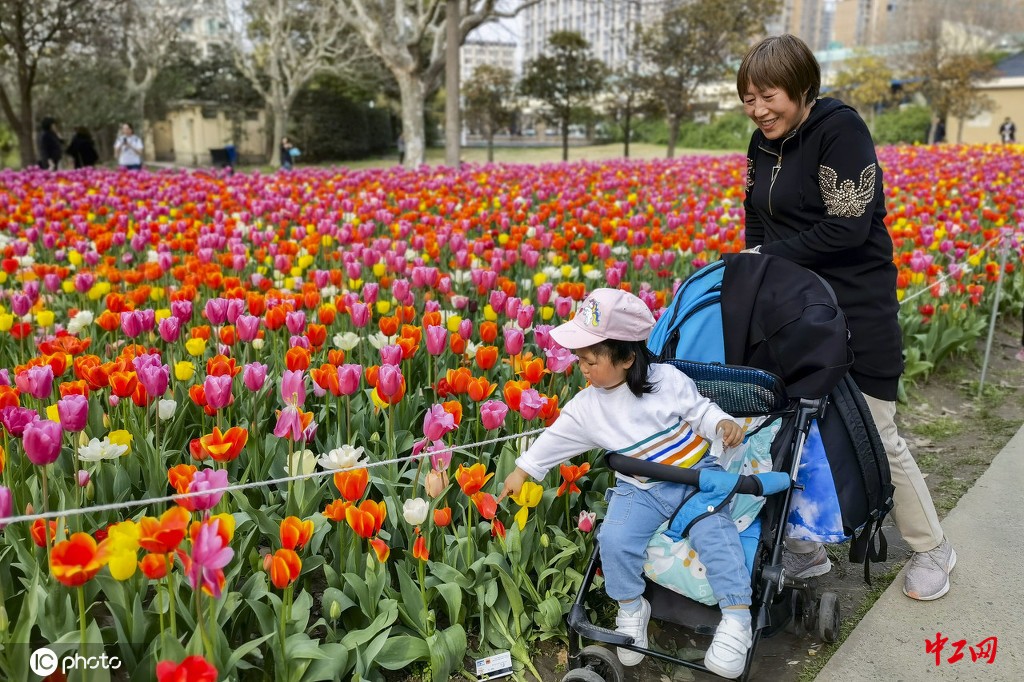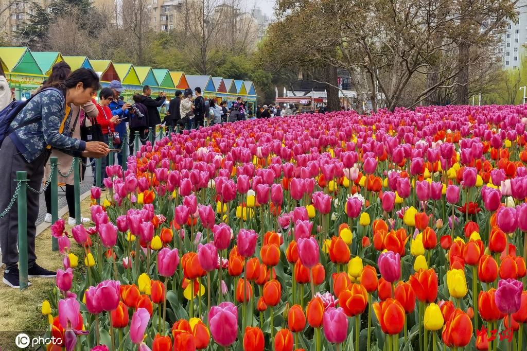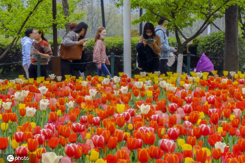 2021年3月15日,上海市民正在大宁公园内欣赏郁金香。据了解,今年公园内总计种植了150万株郁金香,总种植面积约19500㎡,颜色多达30多种。不同时期陆续盛放的郁金香可以让整个观赏期延长到一个月左右。(孙小白/IC photo)