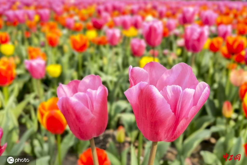 上海大宁公园郁金香绽放 五彩花海美不胜收