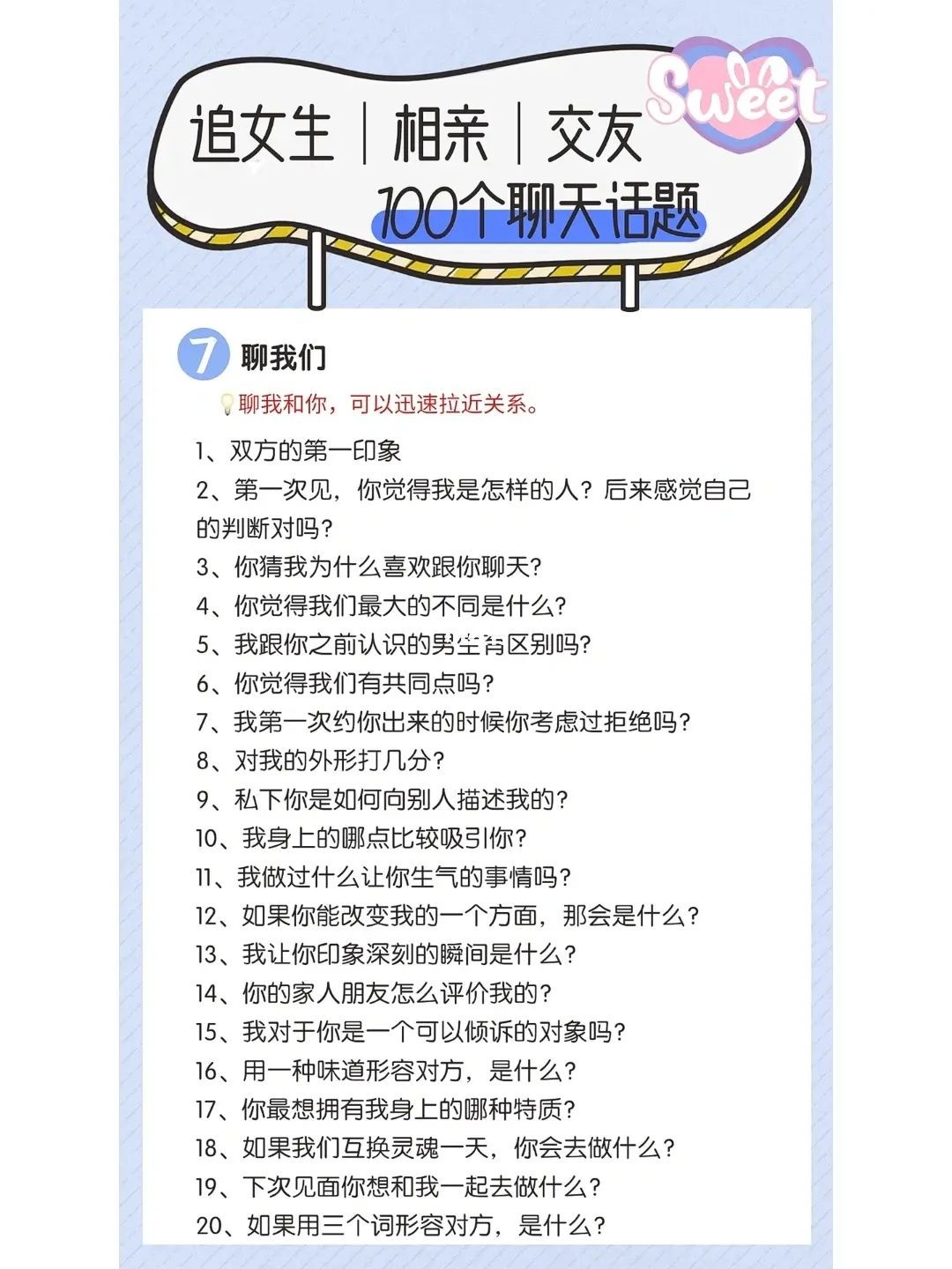 100个有趣又不冷场的聊天话题