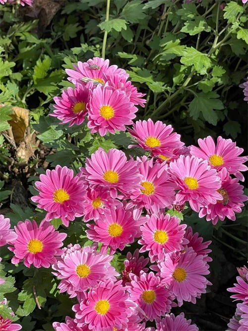 一丛丛、一簇簇的秋菊环绕着房屋,花开热烈,这样的场景就好似到了陶渊明的家。