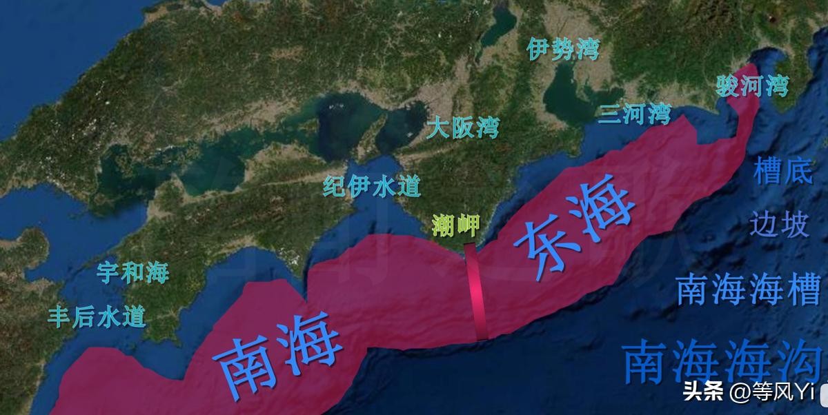 南海海槽全长700km,和歌山县潮岬将南海海槽水域分为了东海、南海两部分。