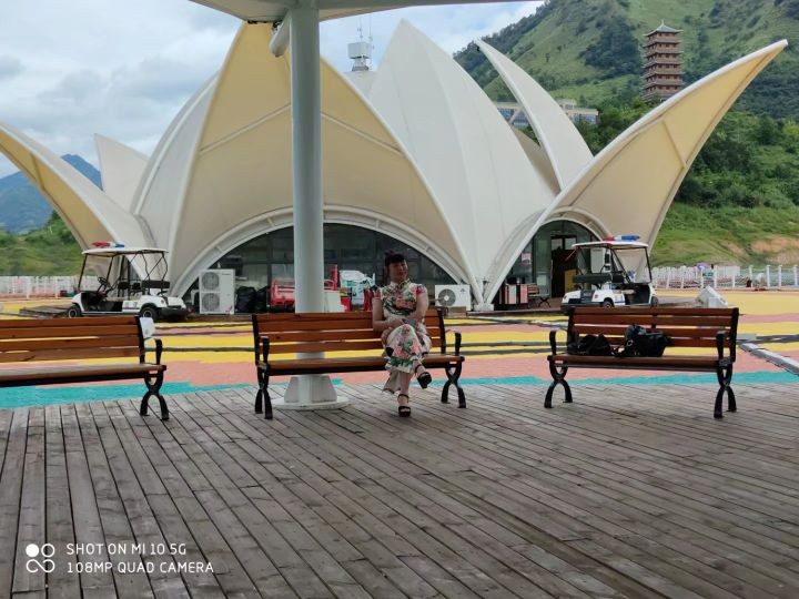 我们座着观光车,阳光妩媚,微风吹过一阵,感到凉快了。十分钟左右就到了景区,呈现在眼前的是个:“姜太公钓鱼,愿者鱼上钓,不愿者鱼开溜。”眺望对面山上有个观景塔,湖风吹得很大,让人舒服多了,景区走道旁边开着三角梅,在阳光的照耀下,显得格外的艳丽。美女,都要站在花下拍下自己动人的倩影,拍抖音吧,好好哂哂自己。