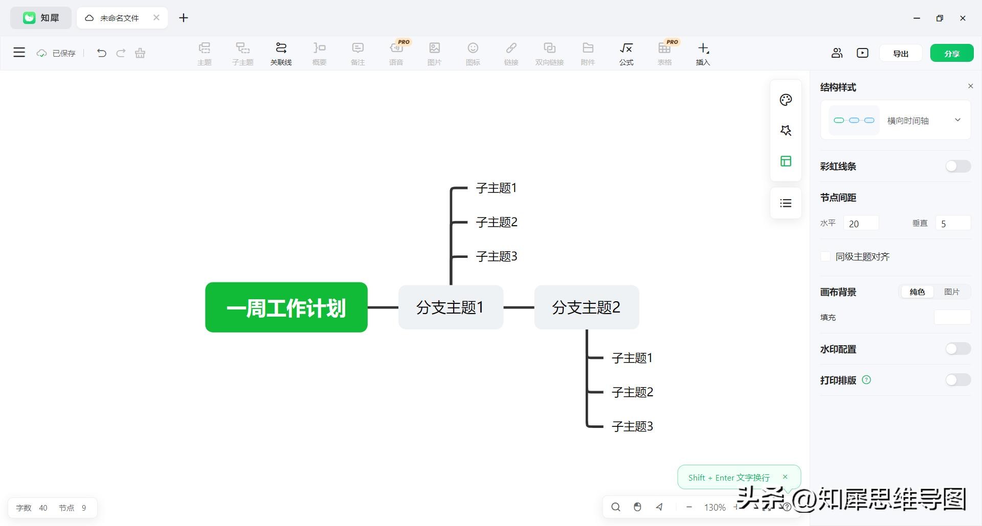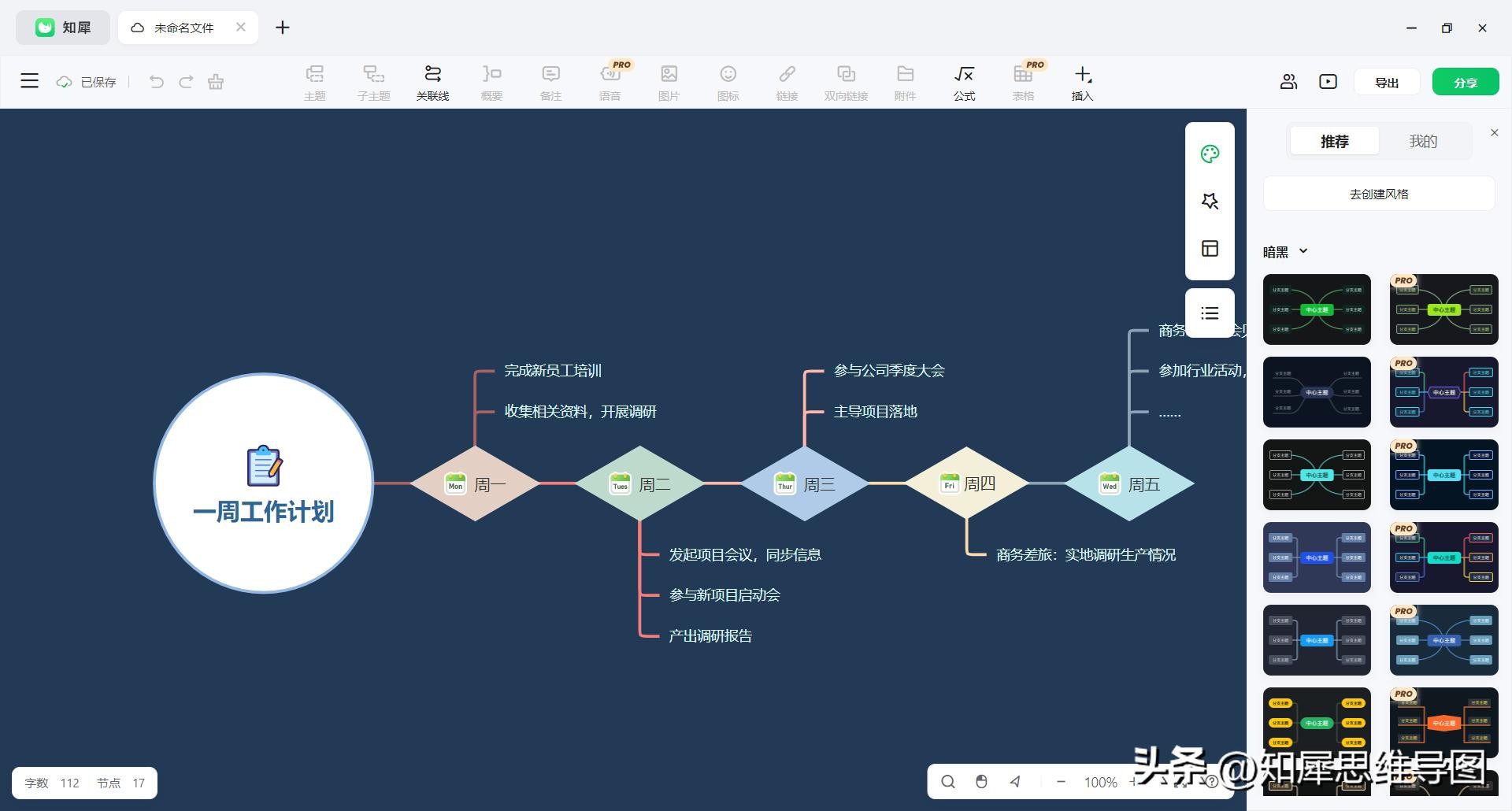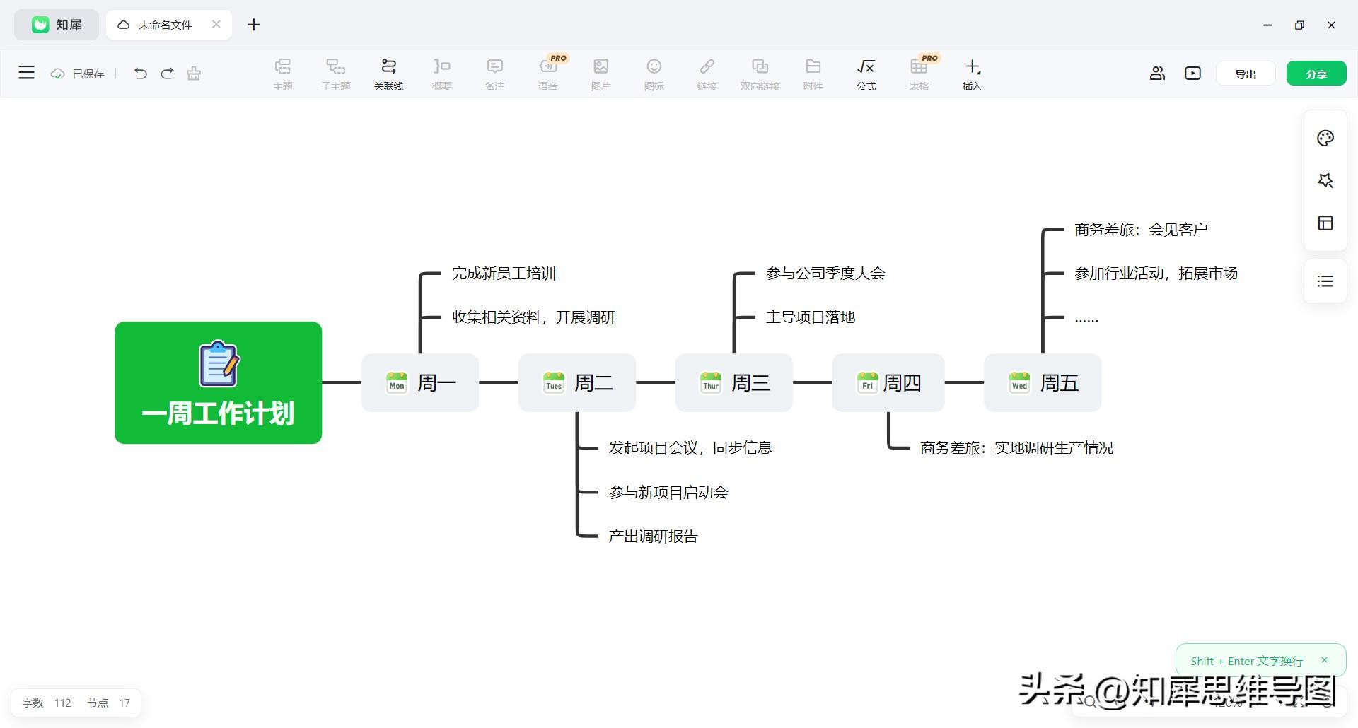 步骤1:打开知犀思维导图,新建鱼骨图,输入主题,例如一周工作计划