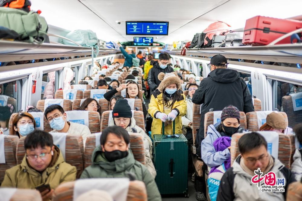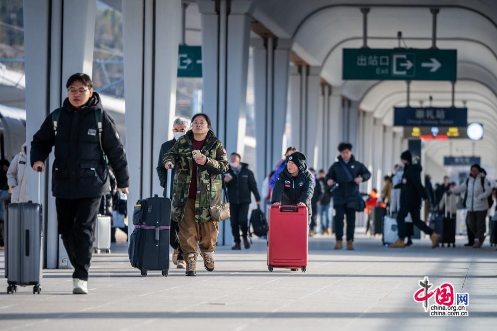 2024年12月29日,乘客从北京北站乘车前往京张高铁崇礼站。中国网记者 郑亮摄