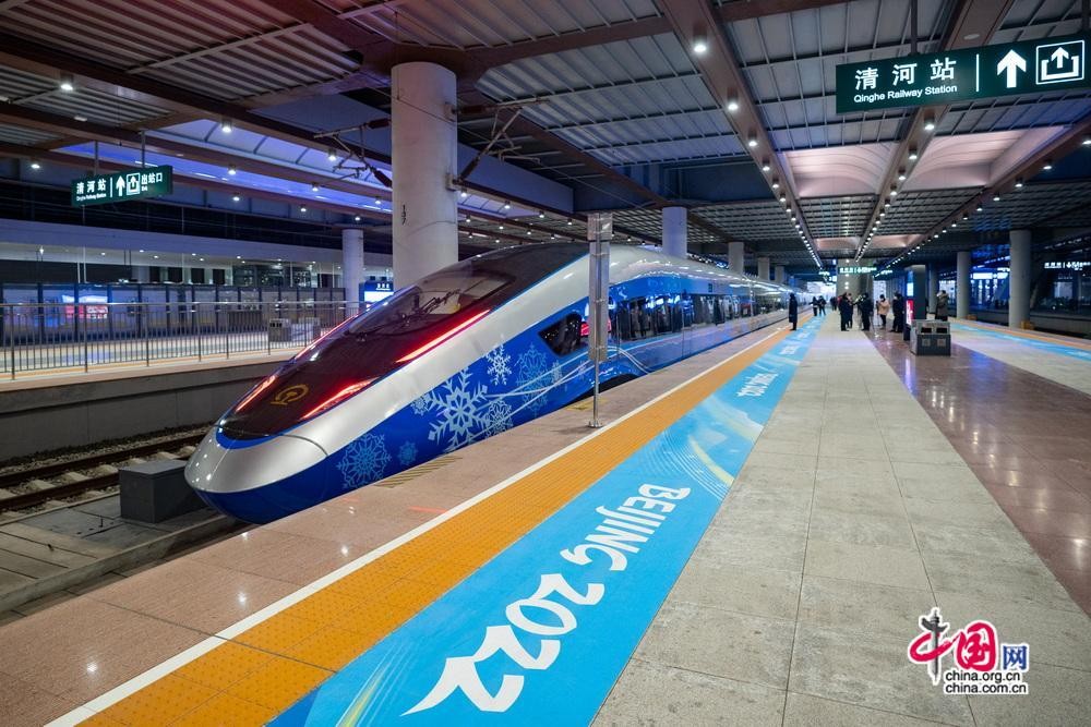 服务北京冬奥会的世界先进智能高铁“瑞雪迎春”冬奥列车。(资料图)中国网记者 郑亮摄
