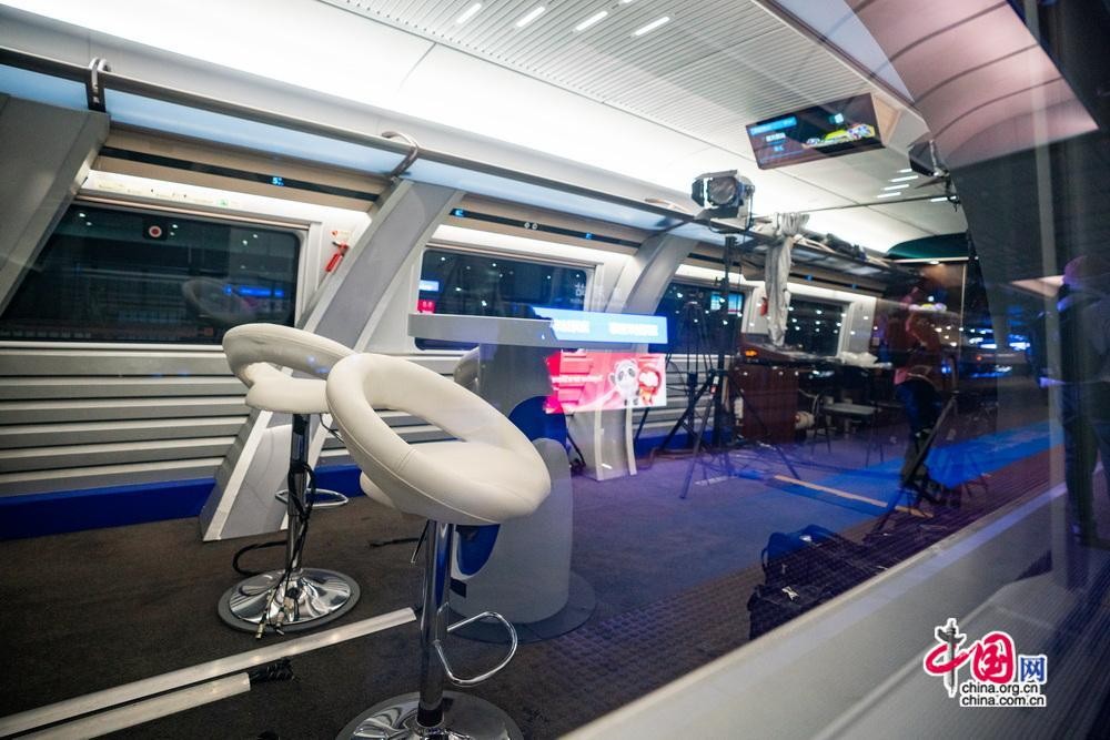 服务北京冬奥会的世界先进智能高铁“瑞雪迎春”冬奥列车上的移动直播间。(资料图)中国网记者 郑亮摄