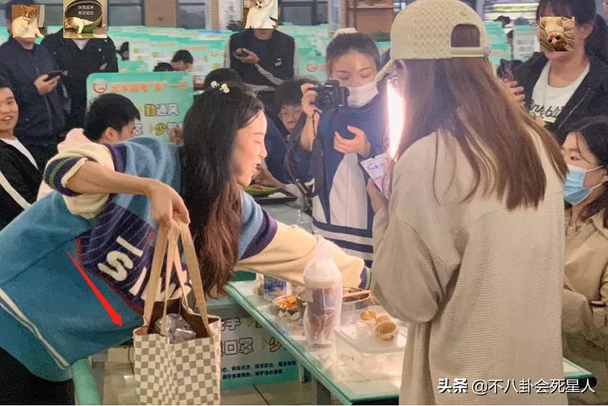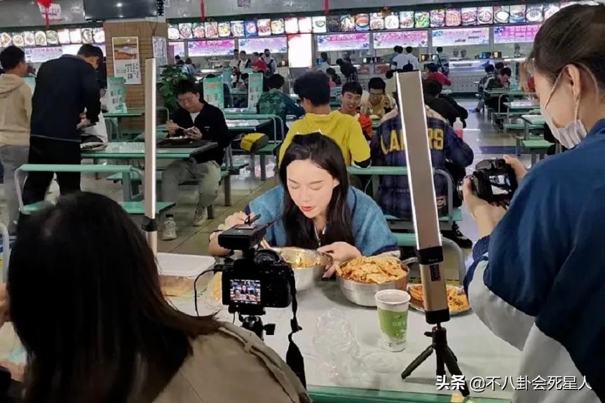 她去大学食堂拍摄时,身边也是跟着许多助理贴身伺候,和后面独自用餐用餐的同学,形成了鲜明的对比。