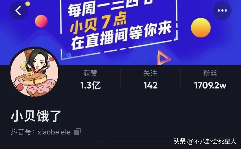 目前,小贝饿了在某视频平台有1709万粉丝,作品总点赞数高达1.3亿。