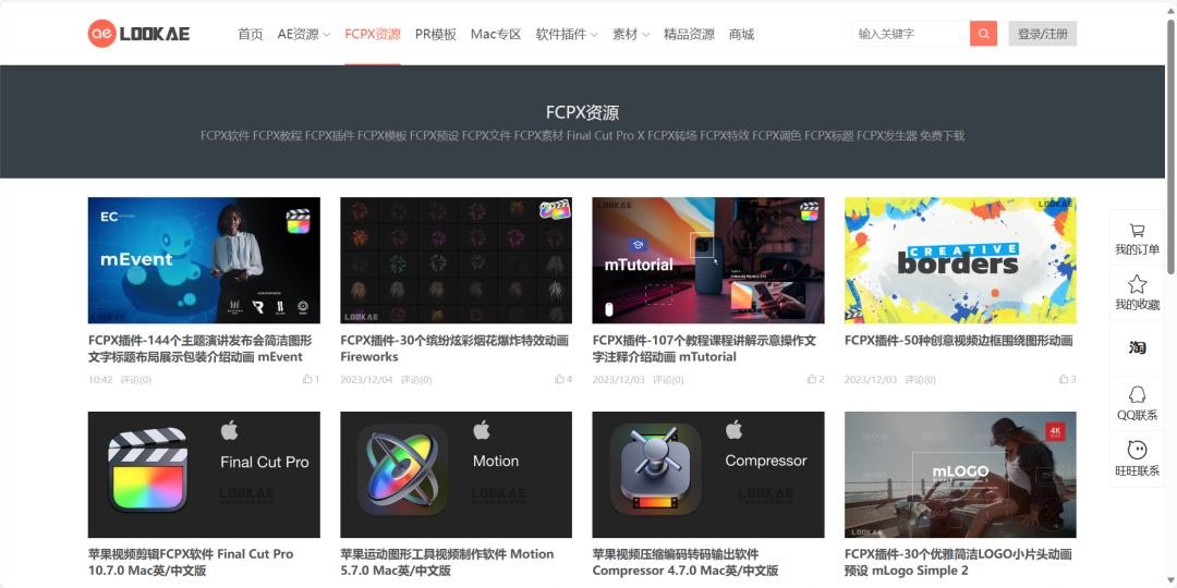 它是一个后期技术交流网站,提供AE资源、FCPX资源、PR模板等多个专区的丰富资源,还涵盖视频特效、视频教程、各种视频素材下载等服务。