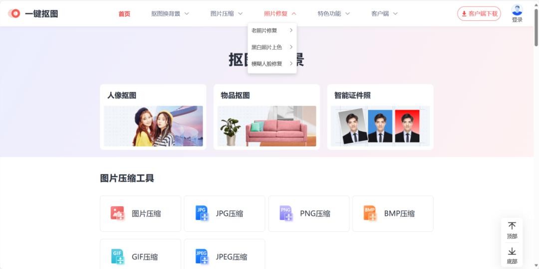 它是一个综合处理图片的在线工具,支持图片压缩、图片转换以及老照片修复等功能,可便捷、一站式地满足生活和工作上的不同图片处理需要。