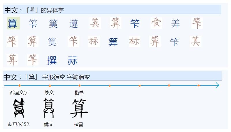 相与比述本义:表示核计,计数。如:《说文》:“算,数也。”。《仪礼·乡饮酒礼》:“无算爵。”。《仪礼·丧服记》:“亲则月算如邦人。”。《仪礼·士丧礼》:“明衣不在算。”。《礼记·檀弓下》:“有算为之节文也。”。《论语·子路》:“何足算也?”。《儒林外史》:“只恐把铁棍子打完了,也算不到这笔帐上来。”。又如:算还(结算支付)、算尽镏铢(极微小的数量也要算)、算来(计算起来)、算刻(犹计算)、算定(经过计算而确定或断定)、算程(计算路程)。