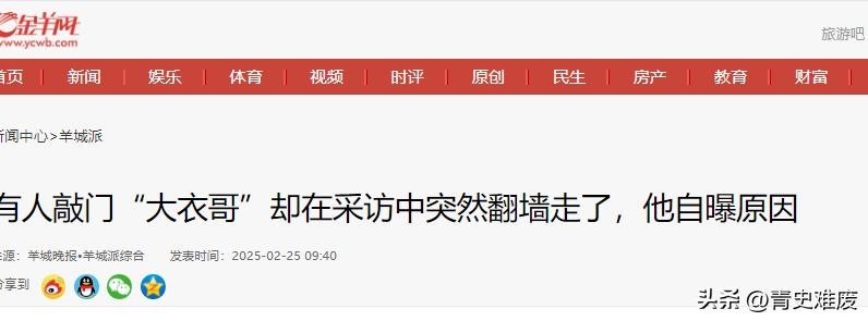 金羊网《有人敲门“大衣哥”却在采访中突然翻墙走了,他自曝原因》