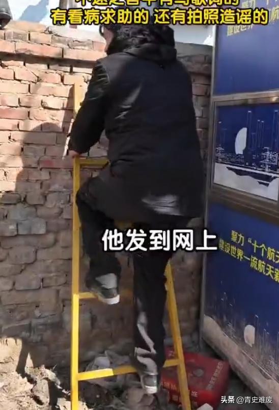 为了更加深入了解这件事,记者来到大衣哥家,顺便采访大衣哥走红之后的生活,刚开始大衣哥还是正常交谈,突然门外传来大大小小的拍门声,让大衣哥直接应激反应,二话不说,爬上梯子翻墙走了。