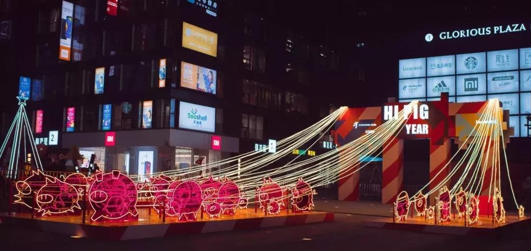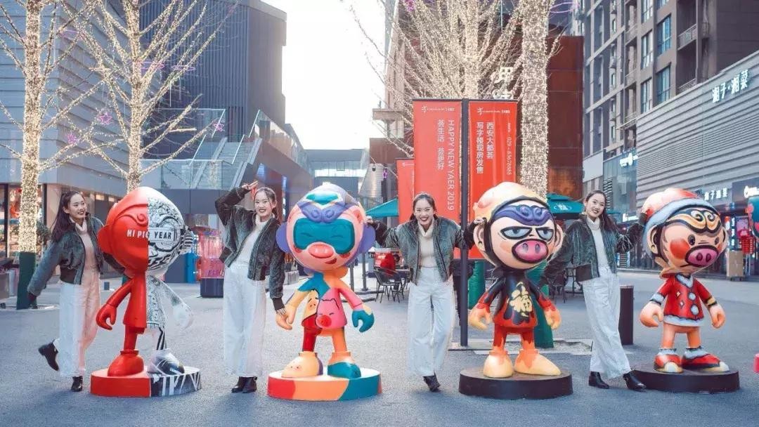 位于高新繁华地段的西安大都荟,新年走起了又萌又酷的猪猪风,建议夜幕降临灯光亮起的时候来。