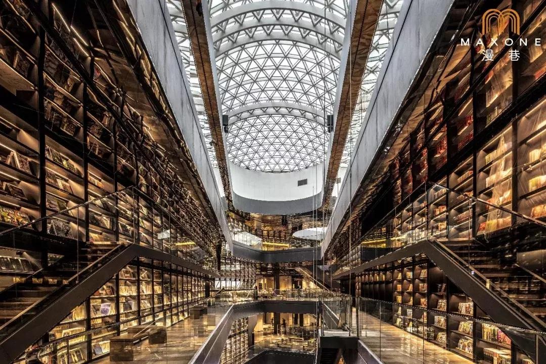 浩浩渺渺的上万册书被安排得明明白白,巨型书架鳞次栉比,由地面一直延伸至天花板,视觉效果燃爆!