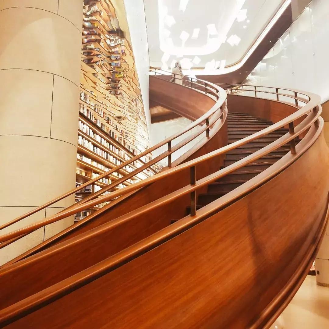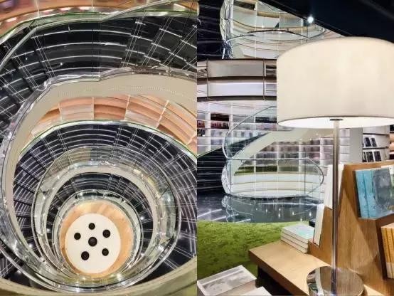 高达三层的旋转楼梯从俯视的视角观看,浓郁的后现代感画风迎面扑来,在这里拍照十分梦幻。