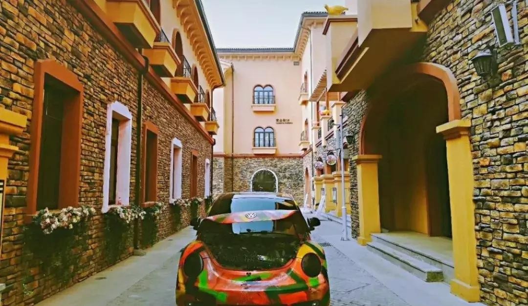 城堡一般的外观和圆弧穹顶窗户真的很欧洲了,因为是婚纱摄影基地所以小镇真的超适合拍照!