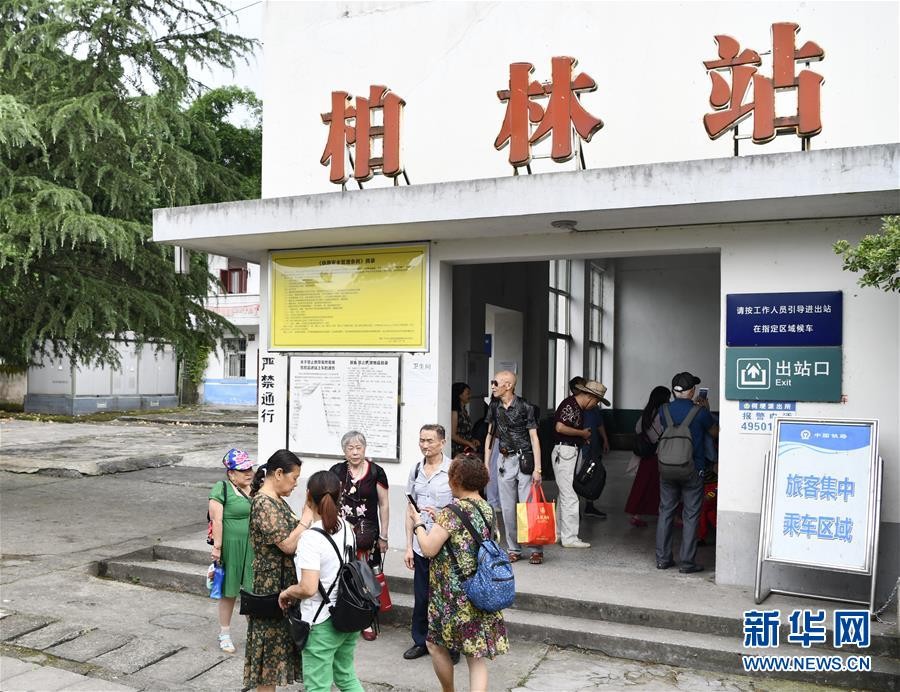 在成渝铁路柏林站,旅客们在怀旧感十足的老候车站拍照(6月14日摄)。 新华社记者 刘潺 摄