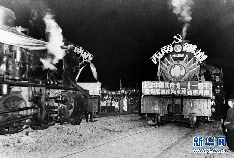 成渝铁路线西起成都,东抵重庆,作为中国西南地区第一条铁路干线,是连接川西、川东的经济、交通大动脉。1950年6月15日,成渝铁路正式开工。西南地区10余万军民在没有大型机械化设备、施工条件极端艰苦、路料运力极为匮乏的情况下,仅用两年时间便建成全长505公里的成渝铁路。1952年7月1日,成渝铁路正式全线通车运营,并服役至今。这条铁路开创了新中国铁路建设史上的新时期,为新中国铁路建设积累了宝贵经验。在开通后的60多年里,成渝铁路为四川、重庆乃至整个西南地区的经济发展作出重要贡献。 新华社发