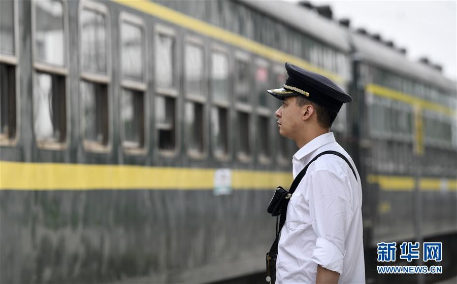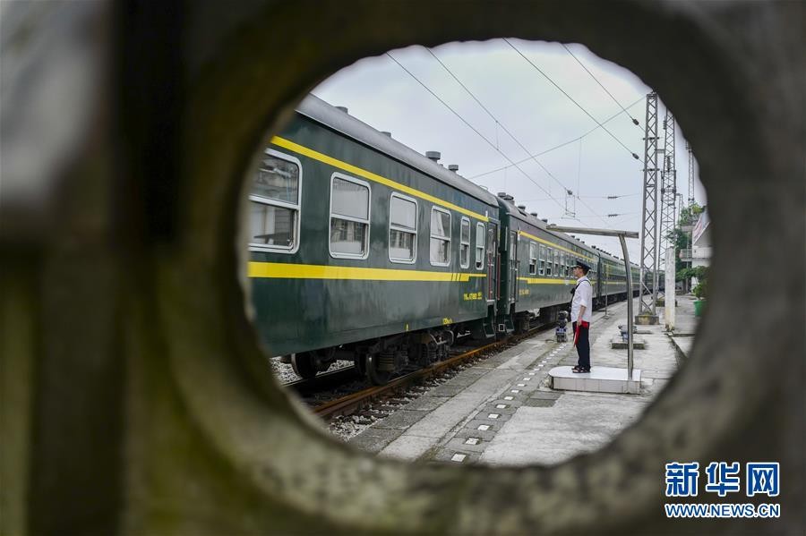 在成渝铁路铜罐驿站,一名铁路职工在接发列车(6月11日摄)。新华社记者 刘潺 摄
