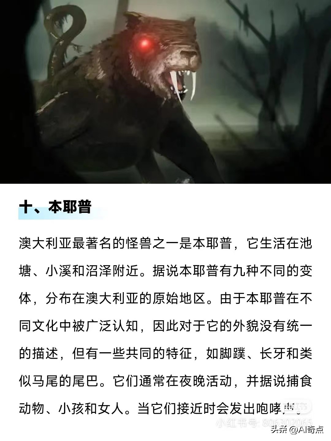 在澳大利亚的广阔内陆,尤其是蜿蜒曲折的河流与深邃静谧的沼泽地,流传着一种古老而神秘的生物——本耶普(Bunyip)。本耶普,这个词在当地的原住民语言中意为“恶魔”或“水魔”,它被描绘为一种栖息在水边的强大生物,带有浓重的神秘色彩。