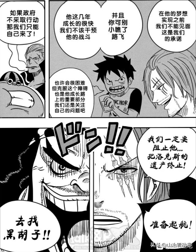 在世界会议篇章中,红发香克斯与五老星见面,五老星对红发香克斯的态度很好,还特意空出时间等红发香克斯。红发香克斯的身份值得怀疑,他真的只是海贼这么简单吗?红发香克斯与五老星谈论的海贼,应该是指黑胡子,黑胡子的危害性与洛克斯一样,野心勃勃,他要复活洛克斯,所以红发香克斯要五老星采取行动。