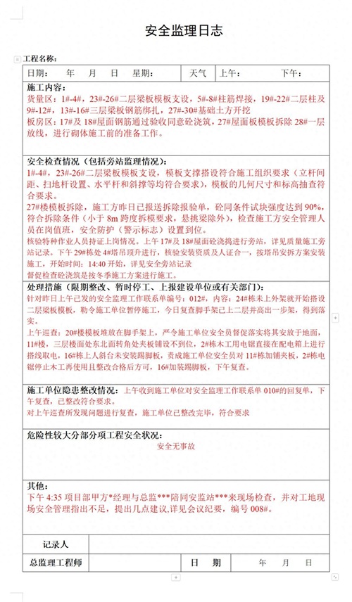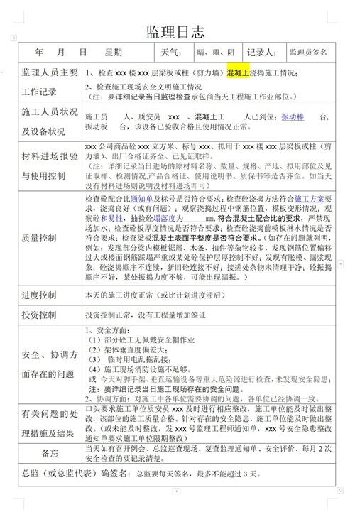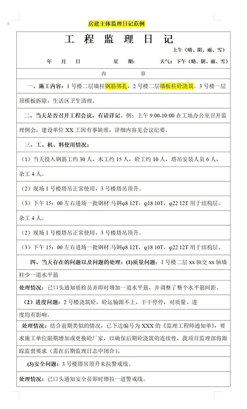 新来的监理每天写的监理日志都不重样!原来是有监理日志范本大全