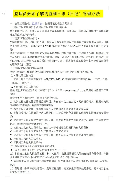 手中的秘密武器——一套详尽而全面的监理日志范本,不仅涵盖了房建、钢筋、混凝土、土方、桥梁等常见工程的方方面面,更融入了丰富的注意事项与规范要求,让每日的监理工作变得井然有序,且各具特色,不重样,可随时修改使用
