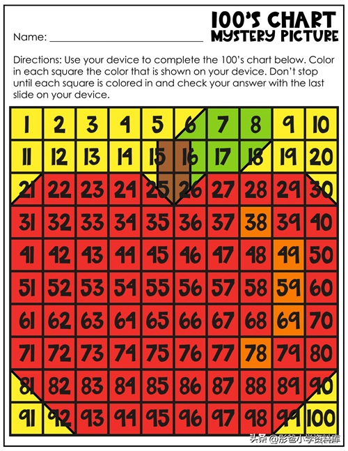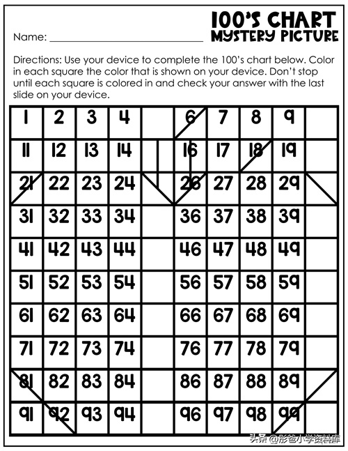 百数表新玩法来啦,给小孩打印吧。趣味百数表涂鸦