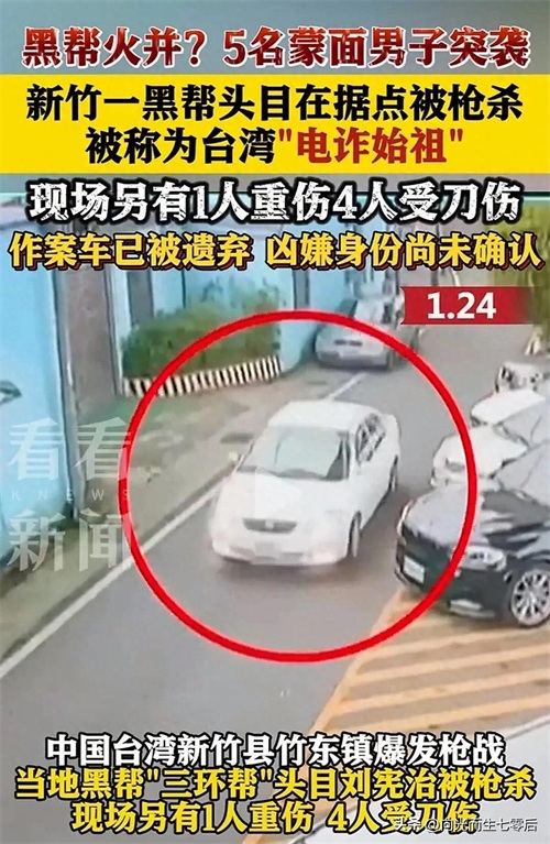 2025年1月25日消息,台湾新竹县竹东镇“三环帮”堂口据点,24日晚上发生一起恐怖的枪击砍杀事件,其中一名黑帮“大哥”刘宪治被枪杀,已死。另有5人受伤,其中一人伤势严重。