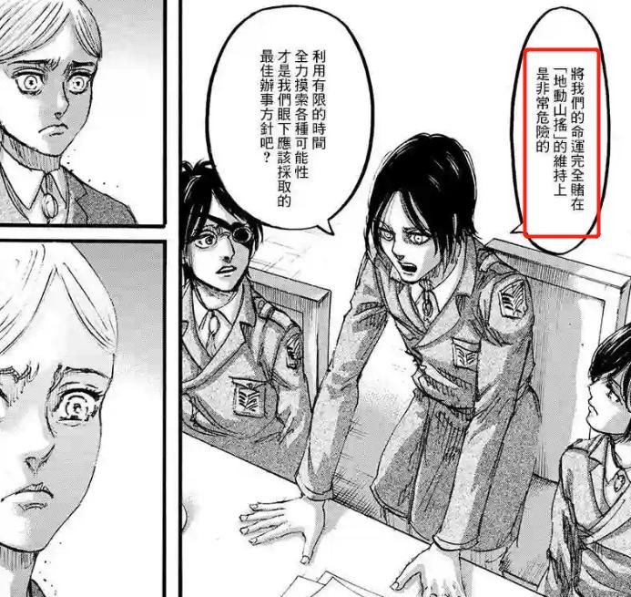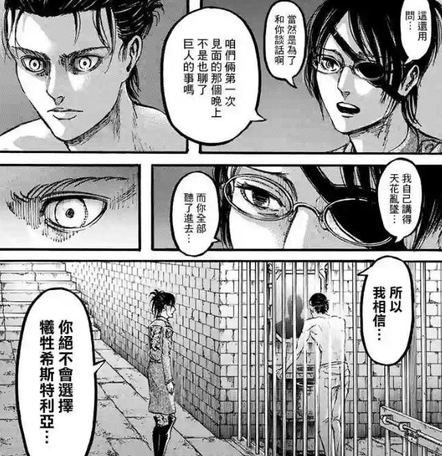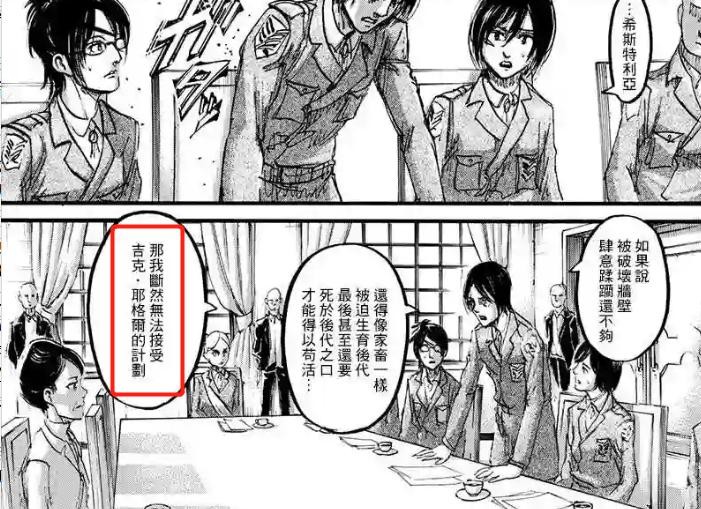 在107话中,艾伦与韩吉的对话就有提到艾伦擅自行动的问题,在这话我们可以知道最初艾伦是因为不想牺牲希斯特利亚,也就是说出于保护自己的同伴而选择让大家思考其他方法,但就两年后,调查兵团依旧没能得出一个好的答案。