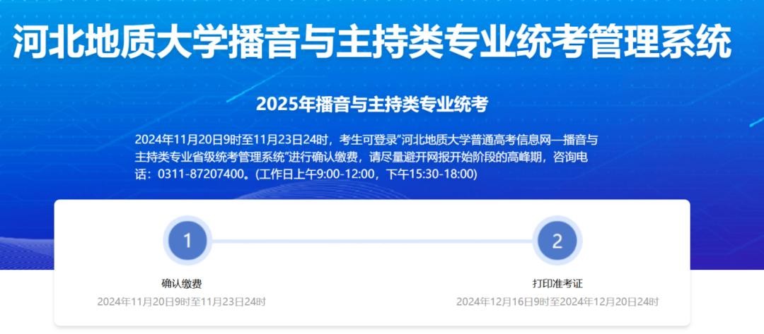河北地质大学普通高考招生信息网“播音与主持类专业统考管理系统”(网址:https://hddbytk.hgu.edu.cn/)
