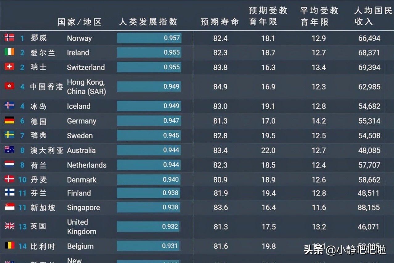 7、挪威连续数十年人类发展指数世界第一!他们国家的人民整体预期寿命可是高达82.4岁,而人均国民收入也是来到了66494美元(大约400000人民币)。而这个人类发展指数早在1990年就由联合国开发计划署提出来了,而且人类发展指标已在指导发展中国家制定相应发展战略方面发挥了极其重要的作用。