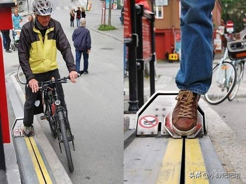 12、在马路上还有专门的自行车电梯,因为挪威整体地形都是比较崎岖的,国内大部分的道路都是上上下下的。而政府又大力提倡绿色出行,为了方便人们上坡,还专门加装了省力的自行车电梯。
