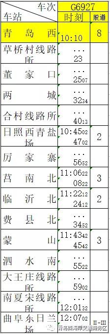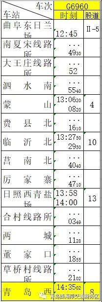 空载试运行列车时刻表信息显示,曲阜东站至青岛西站G6960次,从济宁曲阜到青岛西海岸仅需1小时50分钟即可到达!