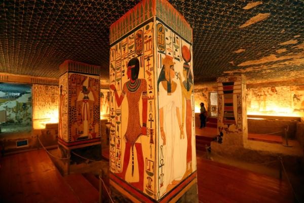 ↑这是1月24日在埃及卢克索王后谷拍摄的奈菲尔塔利地下陵墓。