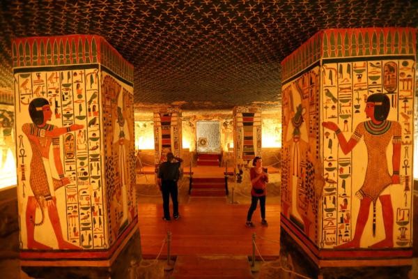 ↑1月24日,游客在埃及卢克索王后谷参观奈菲尔塔利地下陵墓。