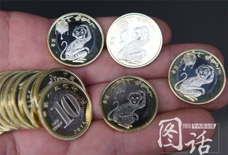 1月16日上午,中国人民银行发行2016年贺岁普通纪念币。“猴币”面额为10元,材质为双色铜合金,发行数量为5亿枚。成都市民在农业银行排队兑换在网上预定的2016猴年纪念币。
