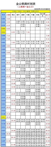 “1·5”新图实施以来,铁路部门密切关注旅客出行体验,认真听取关于金山铁路运力安排等方面的意见建议,根据线路综合运营情况,最大限度挖掘运输潜力,经与地方交通部门沟通,进一步优化金山铁路列车开行方案,计划自1月19日起对金山铁路部分车次的开点、停站适需微调: