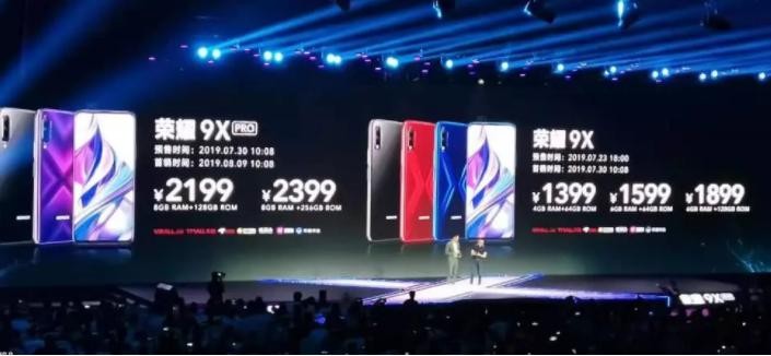 荣耀9X PRO则有8GB+128GB和8GB+256GB两个版本,价格分别为2199元和2399元,配色有幻影紫和幻夜黑可选。9X系列今日预售,7月30日正式开售。