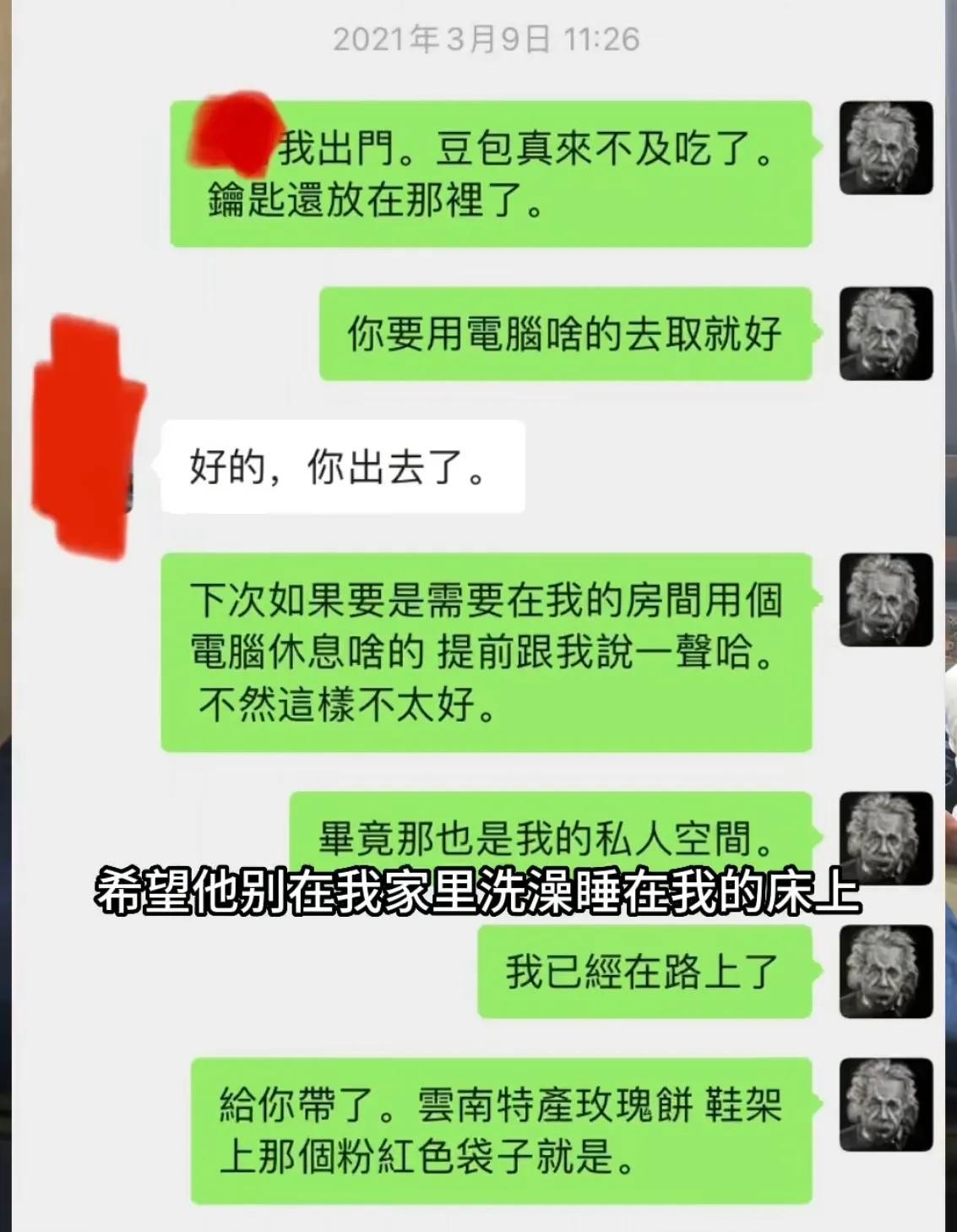 不仅如此,邻居还相当的不把自己当外人,桌子上,冰箱里,到处都堆满了他的东西,就连床上都铺着他的衣服,一看就是已经生活在房间里的日常。