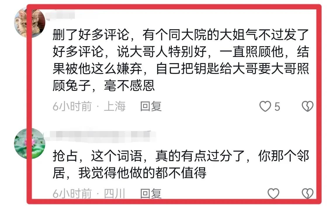不少网友看了后,认为周瑞太小气,没格局,邻居大哥每天义务帮他喂那么多次,他却嫌便便没搞干净,弄得人家里外不是人。