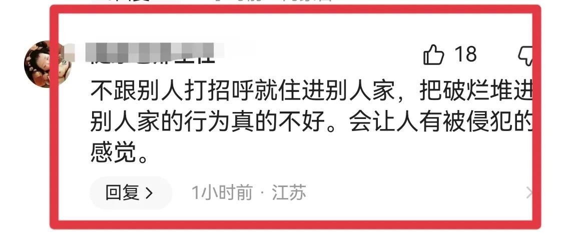 但也有一部分网友认为,不跟别人打招呼就住进别人家,把破烂堆进别人家的行为真的不好,真的让人很不舒服。