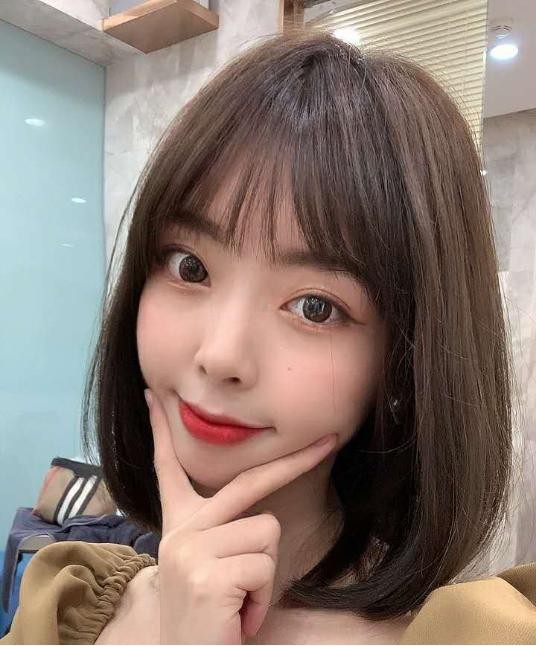 第三款就是一款非常自然的内扣LOb头。LOb头发型也是非常有慵懒感的,而且大部分都是以中短发为主,想要尝试短发的姑娘一定要尝试一下。像这款内扣短发就非常减龄,蓬松的弧度非常修饰脸型,微微内卷的发尾也十分减龄,再搭配上文艺复古味十足的法式刘海,整体造型看起来也太有学生气息了吧。