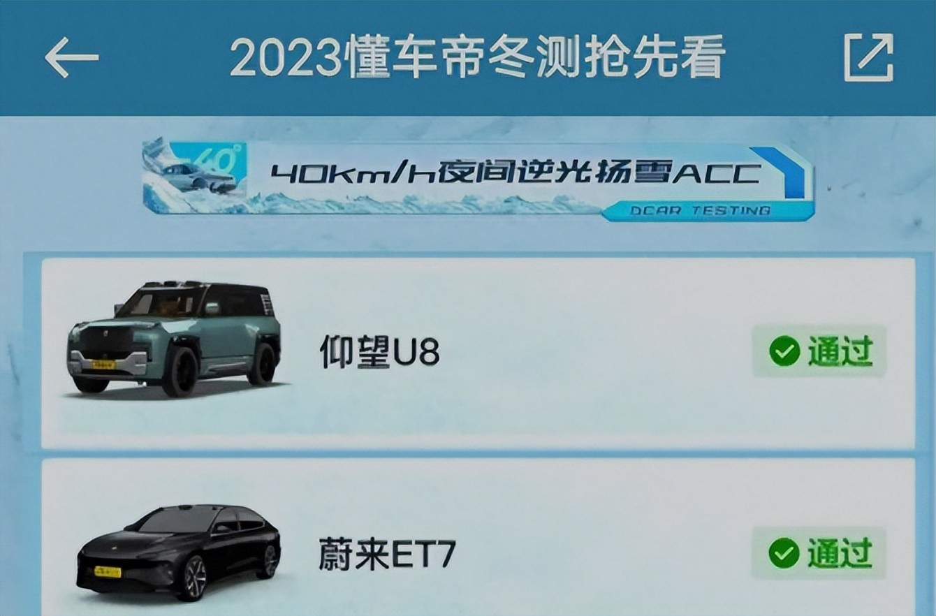 这还真不是赵长江吹牛,在懂车帝2023年冬季测试中,腾势N7和仰望U8通过了夜间逆光ACC测试,“遥遥领先”的问界M7和问界M5都没有通过。