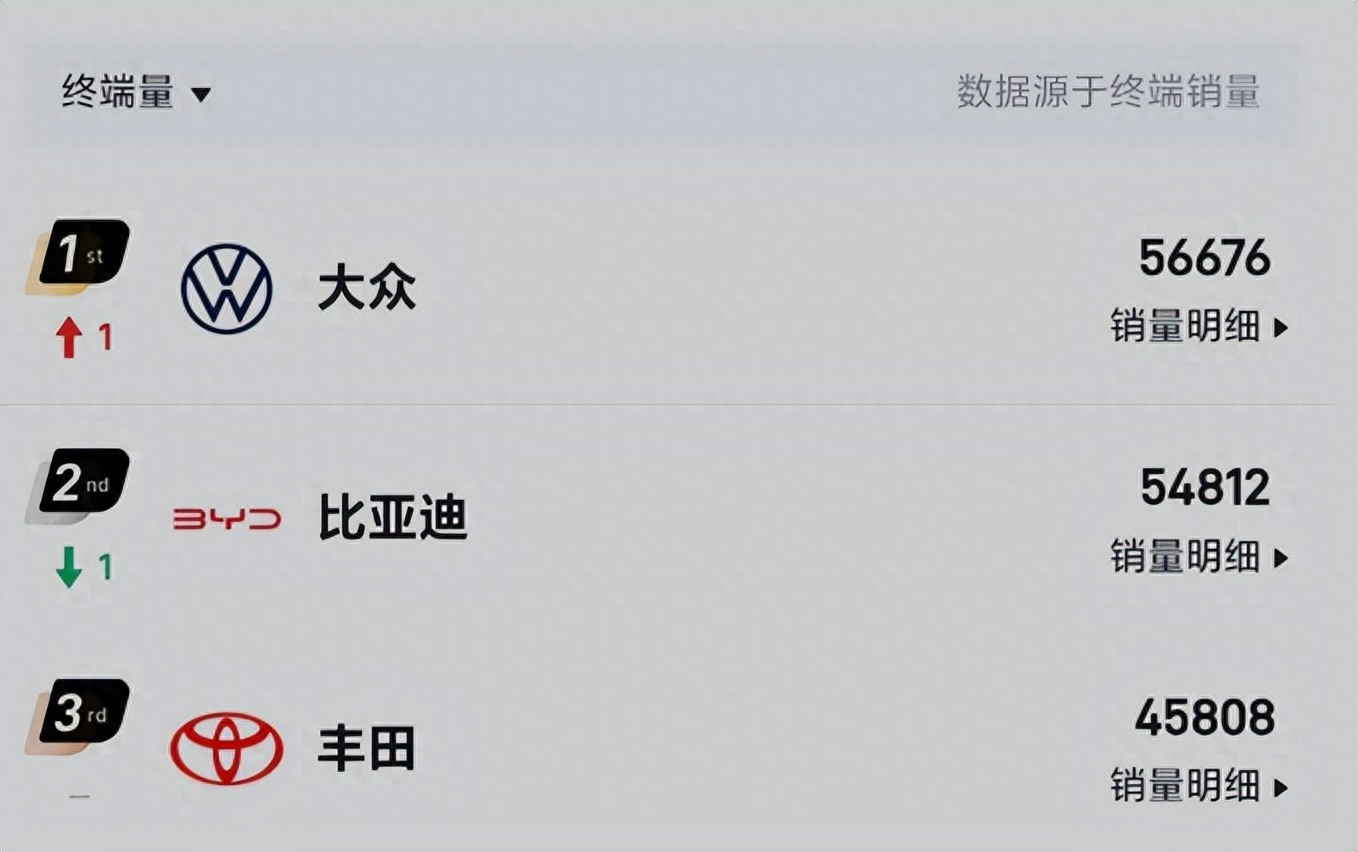 12月份首周的交付量出炉,一直霸居榜首的比亚迪,终于被大众挤到第二的位置,终端销量落后大众1800多台。