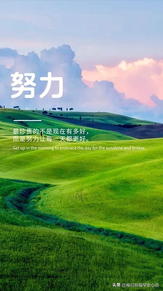 4、生活是一场旅行,要懂得好好欣赏每一段的风景。不要因为一次失败,就放弃你原本想要去到的目的地。努力是人生的一种状态,最精彩的不只是成功的那一刻,还有那段奋斗的过程。愿你努力后的明天更精彩,早安!