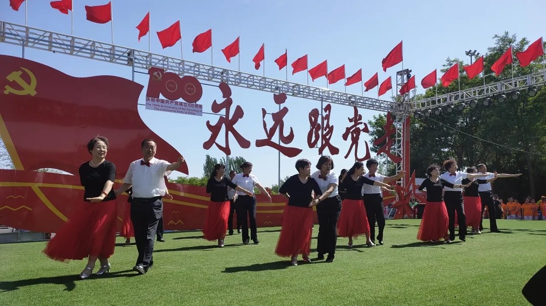 现场,各参赛队员精神饱满,随着音乐的节拍翩翩起舞,热情洋溢的舞姿与经典红色歌曲相得益彰,表达了全县人民感党恩、跟党走,万众一心、同心协力共建美好家园的爱党爱国情怀。