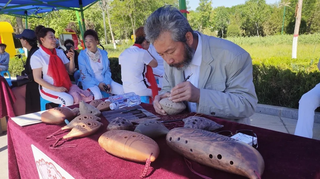 活动现场,还分别展示了叶雕、糖塑、泥塑、陶瓷等众多非遗作品,来自贺兰县的部分非遗传承人通过现场制作非遗作品参加展示评比的方式,展示非遗魅力,扩大非遗作品的共享面和覆盖面,助推非物质文化遗产更好地融入贺兰群众生活,推动形成保护传承非遗的良好态势。