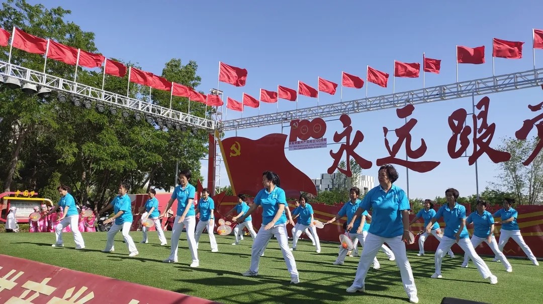 上午9点,贺兰县欣兰广场上人头攒动、热闹非凡。《东方红》《永远跟党走》《红旗颂》等精彩节目的轮番上演,吸引了不少居民驻足观看。
